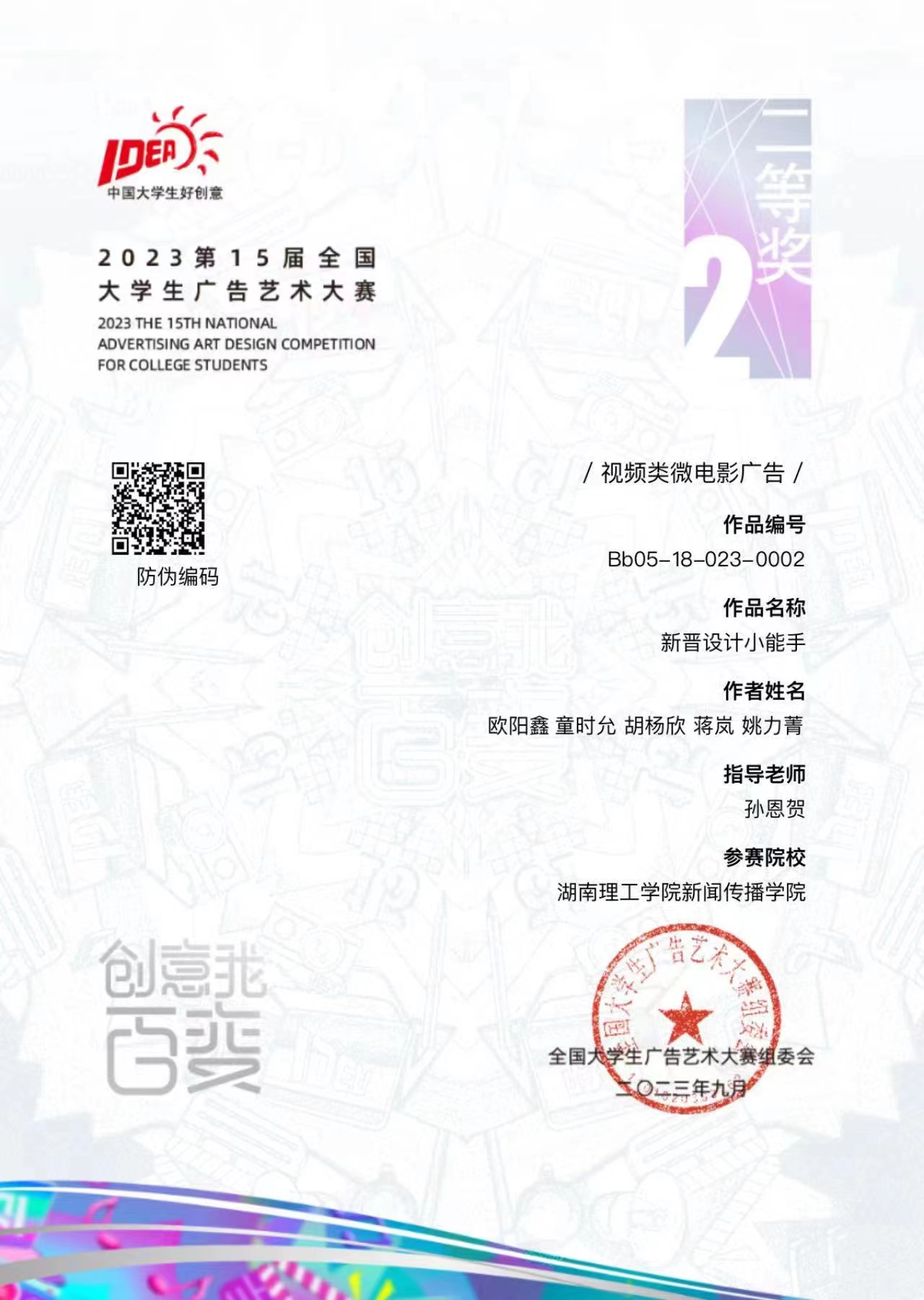 校園網(wǎng)訊 近日,第十五屆全國大學(xué)生廣告藝術(shù)大賽國賽評審結(jié)果揭曉。湖南理工學(xué)院新聞傳播學(xué)院共有7件作品獲獎(jiǎng),其中二等獎(jiǎng)3項(xiàng)、三等獎(jiǎng)2項(xiàng)、優(yōu)秀獎(jiǎng)2項(xiàng),獲獎(jiǎng)等級和數(shù)量均創(chuàng)新高。
