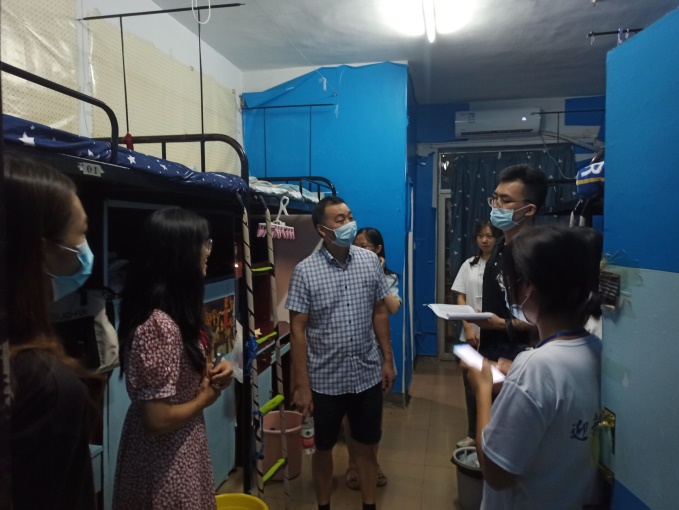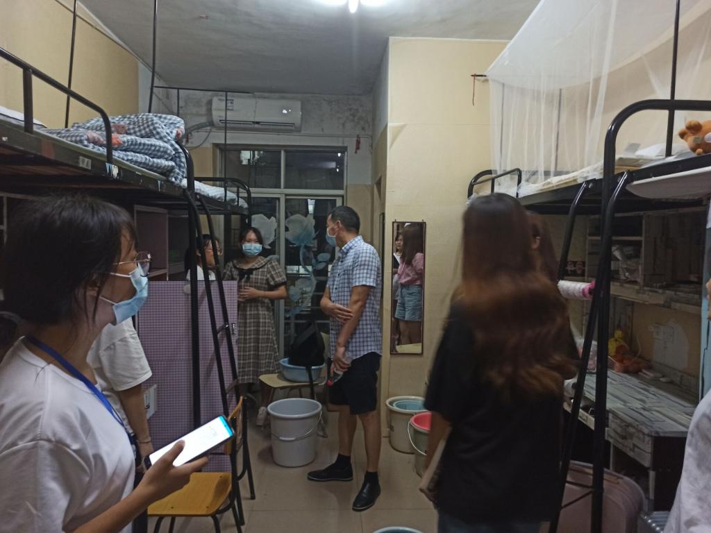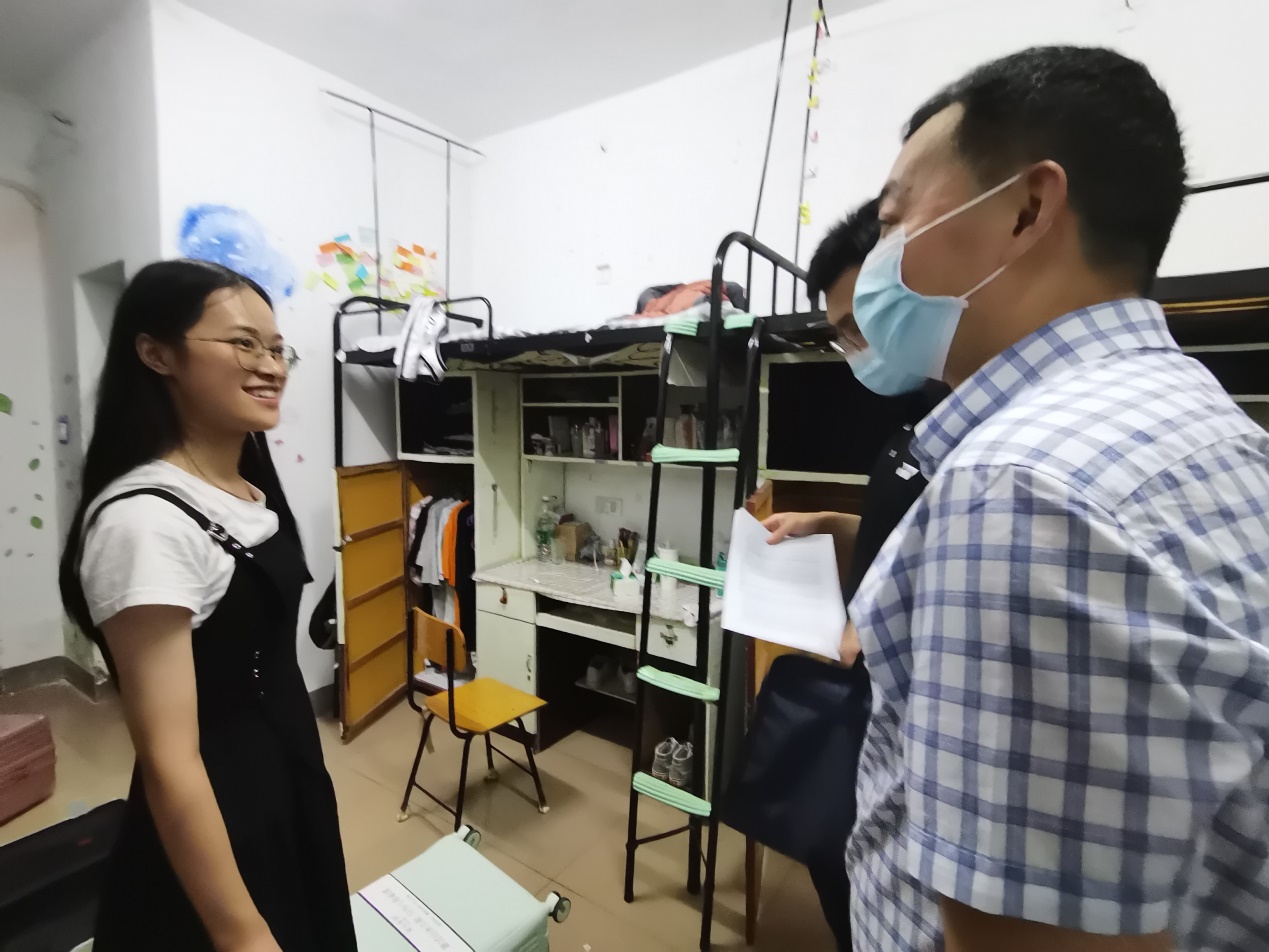 9月11日晚,中文學(xué)院黨委副書(shū)記賀波彬和2021級(jí)學(xué)生輔導(dǎo)員劉子行走訪了新生寢室。