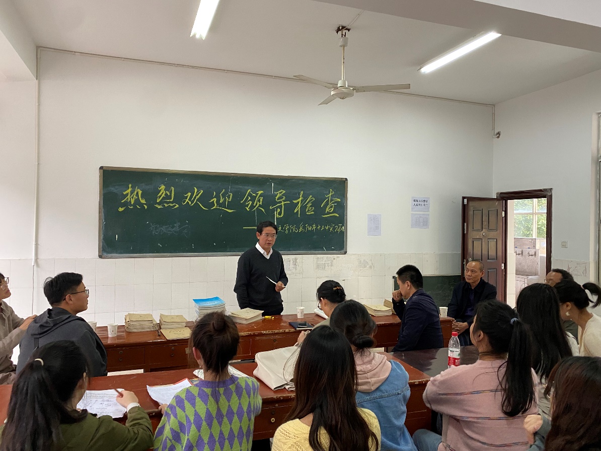 10月25日下午,在中文學(xué)院院長曾煒和黨委書記楊厚均的帶領(lǐng)下,副院長張勇、肖峰,以及唐輝教授、諶安榮教授、齊曉倩博士對2018級本科生教育實習(xí)岳陽市第十三中學(xué)小組進(jìn)行了檢查。