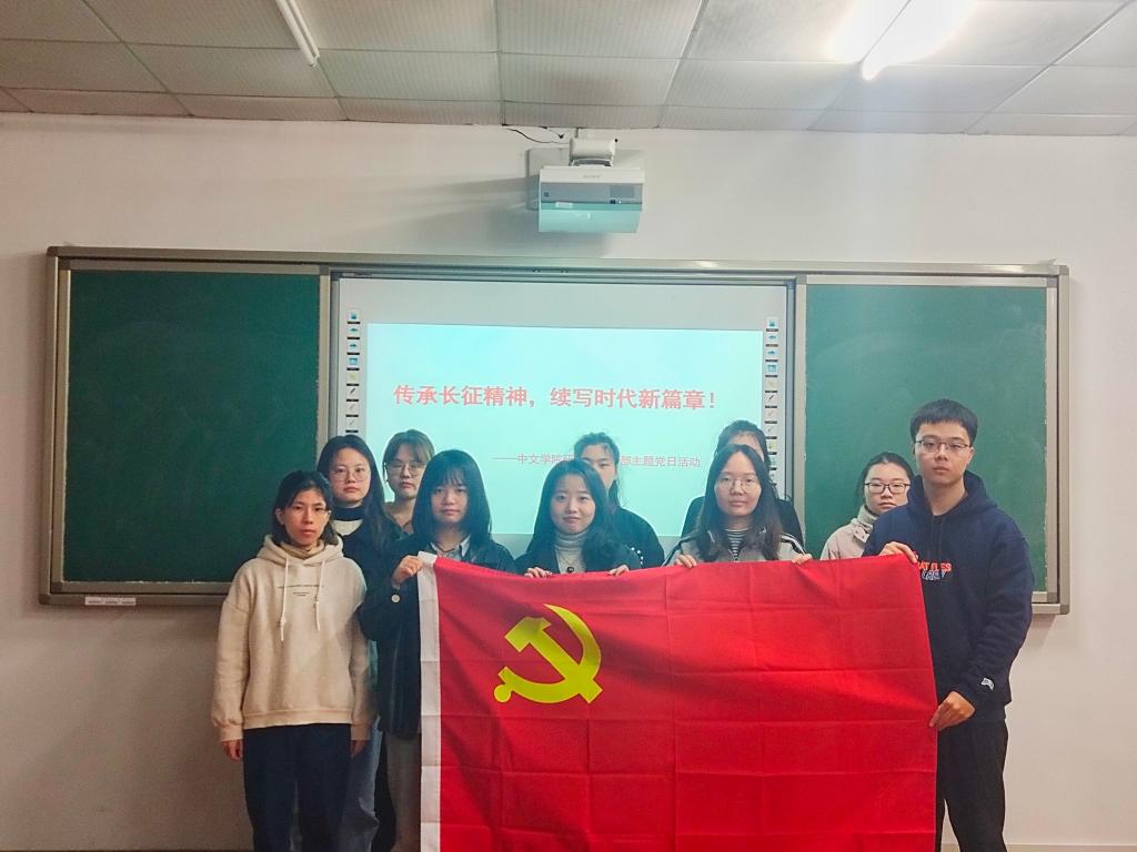 為紀念紅軍長征勝利85周年,弘揚偉大長征精神,中文學院研究生黨支部于10月25日在9314教室“傳承長征精神,續(xù)寫時代新篇章!”主題黨日活動。支部全體學生黨員參加,支部書記陳雅奇主持。