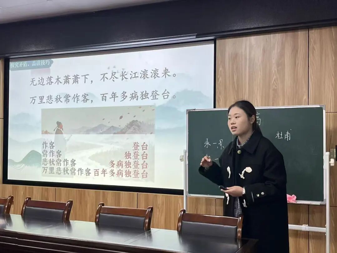 11月14日下午,文學(xué)與新聞傳播學(xué)院2025級碩士研究生教學(xué)技能競賽在9401教室舉行。學(xué)院副院長張勇、諶安榮教授、杜慶華副教授以及郝勝蘭博士、魏祥博士擔(dān)任評委,2024級全體學(xué)科教學(xué)·語文專業(yè)碩士研究生到場觀摩學(xué)習(xí)。