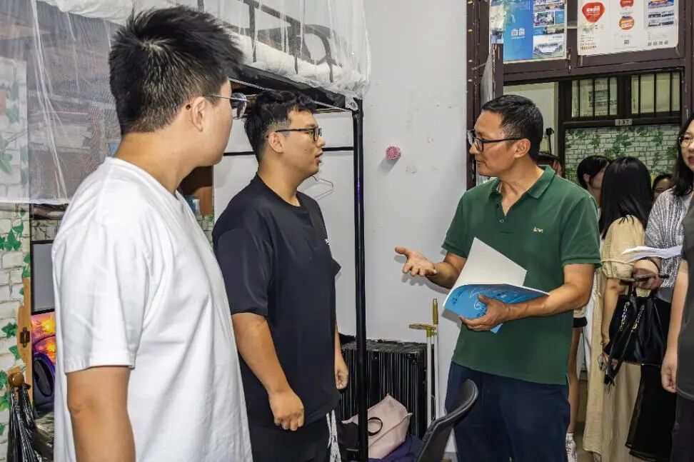 “現(xiàn)在大三了,是準(zhǔn)備考研還是就業(yè)?”“學(xué)習(xí)、生活中有什么困難沒有?走訪中,肖濤面帶微笑,與同學(xué)們面對面交流,詳細(xì)了解大家的學(xué)習(xí)和生活情況。他叮囑同學(xué)們,不論是考研還是就業(yè),一定要明確目標(biāo)、做好規(guī)劃,持之以恒、久久為功。一定要遵守校規(guī)校紀(jì),安全用電出行,謹(jǐn)防網(wǎng)絡(luò)詐騙,確保人身財產(chǎn)安全;一定要愛黨愛國,樹立正確的三觀,時刻注意自己的言行舉止。