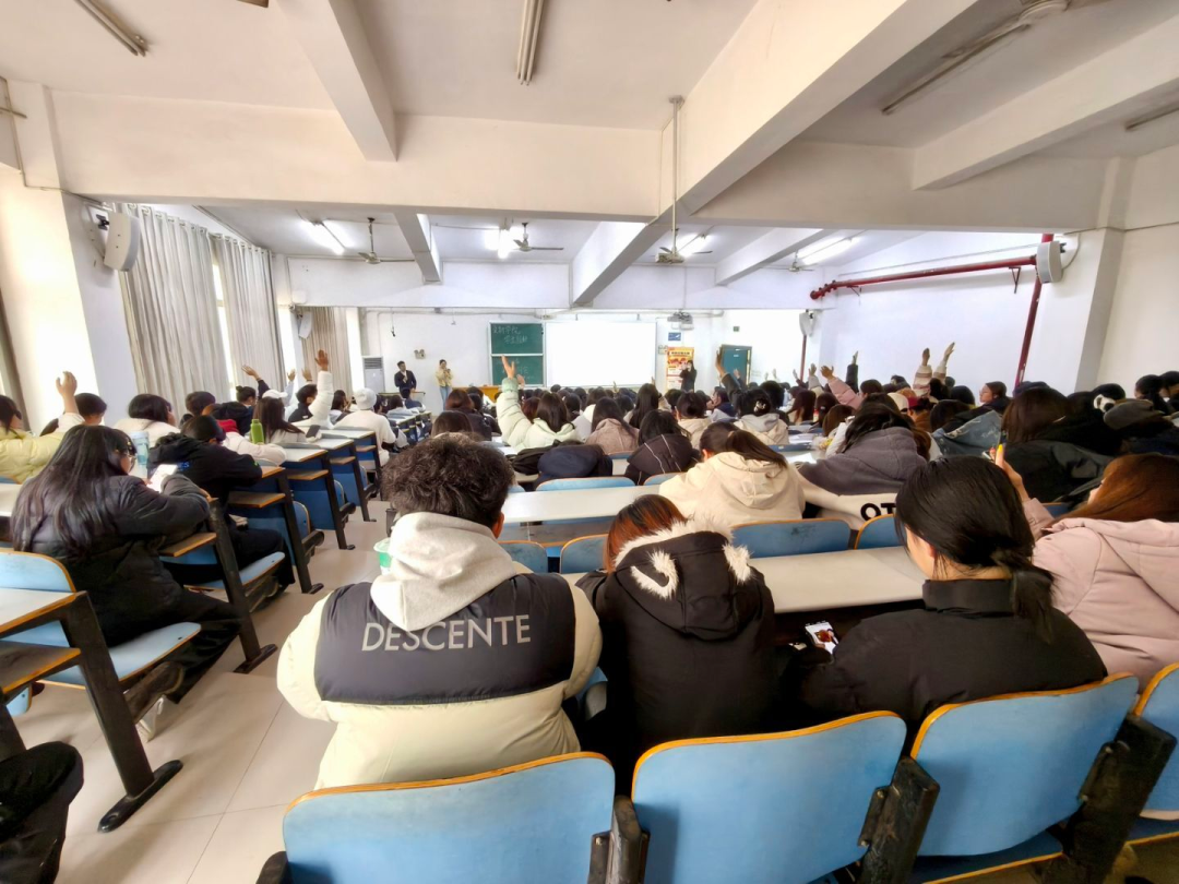 校園網訊 為加強大學生求職風險防范意識,提升畢業(yè)生在求職、考研、考公過程中的風險應對能力,12月9日下午,文學與新聞傳播學院在15208教室舉辦“護航就業(yè)平安路”主題活動。活動特邀湘財證券股份有限公司岳陽分公司投教專員喻靖捷老師主講,2026屆畢業(yè)生代表約200人參加活動,學院學工辦主任劉子行老師出席。