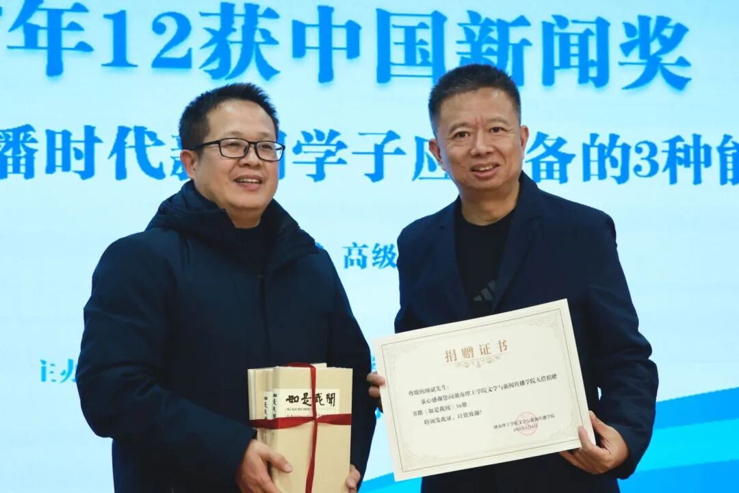 講座結(jié)束后,顏斌與在場聽眾熱情互動,并向文新學(xué)院和學(xué)校圖書館捐贈新書《如是我聞》。