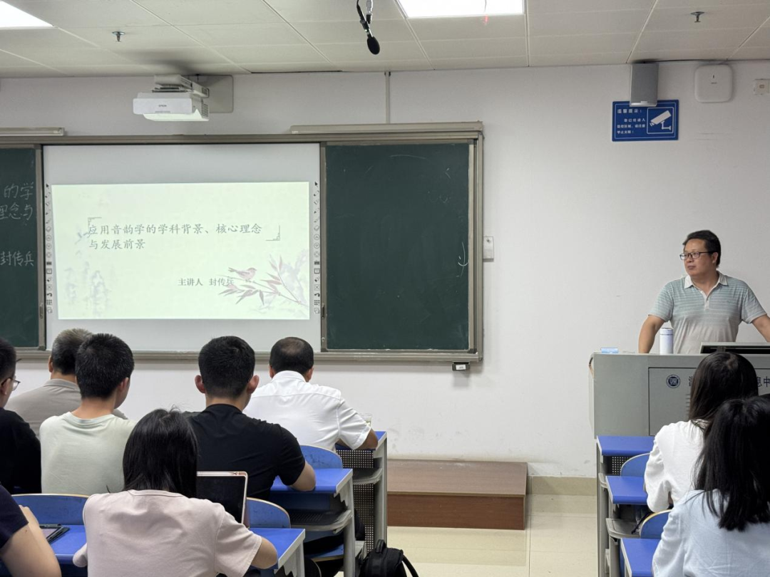 講座中,封傳兵博士圍繞十大核心內(nèi)容展開深入講解。他首先從音韻學(xué)的內(nèi)涵入手,梳理了其發(fā)展歷程,并對(duì)比古今音韻學(xué)的異同,使聽眾對(duì)這一傳統(tǒng)學(xué)科有了更清晰的認(rèn)識(shí)。隨后,他結(jié)合自身研究,分析音韻學(xué)“難教難學(xué)”的癥結(jié)所在,并進(jìn)一步提出《應(yīng)用音韻學(xué)》課程的創(chuàng)新建設(shè)方案。在互動(dòng)環(huán)節(jié),封傳兵博士就方言音韻、古籍標(biāo)點(diǎn)與錄入整理等問題展開討論,不同學(xué)術(shù)觀點(diǎn)的碰撞使現(xiàn)場(chǎng)氛圍格外活躍。