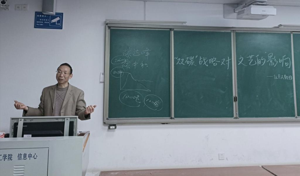 3月10日晚,南湖講壇第33期在12201教室繼續(xù)開講,由碩士生導(dǎo)師、湖南省文藝理論學(xué)會常務(wù)理事任先大教授作“‘雙碳’戰(zhàn)略對文藝的影響”學(xué)術(shù)講座。