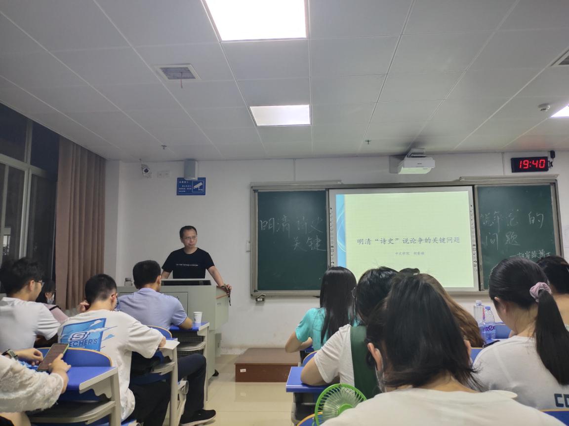 5月31日晚,南湖講壇第33期在12201繼續(xù)開講。由胡睿臻博士作“明清‘史詩’說爭論的關(guān)鍵問題”為主題的學(xué)術(shù)講座,我院漢語21-3BS班、秘書21-1BF班全體同學(xué)參加。
