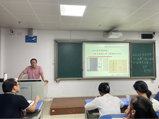 6月15日晚,中國語言文學(xué)學(xué)院南湖講壇第33期在12201繼續(xù)開講。由封傳兵教授作“明末南京官話音韻的雙璧∶《音義便考》和《西儒耳目資》”主題學(xué)術(shù)講座,語言學(xué)教研室肖峰、米嘉瑗、段勇義、朱福妹、唐磊、蔡旺、孫芳莎等老師到場交流,漢語21-2BS班、漢語21-3BS班全體同學(xué)參加了此次講座。