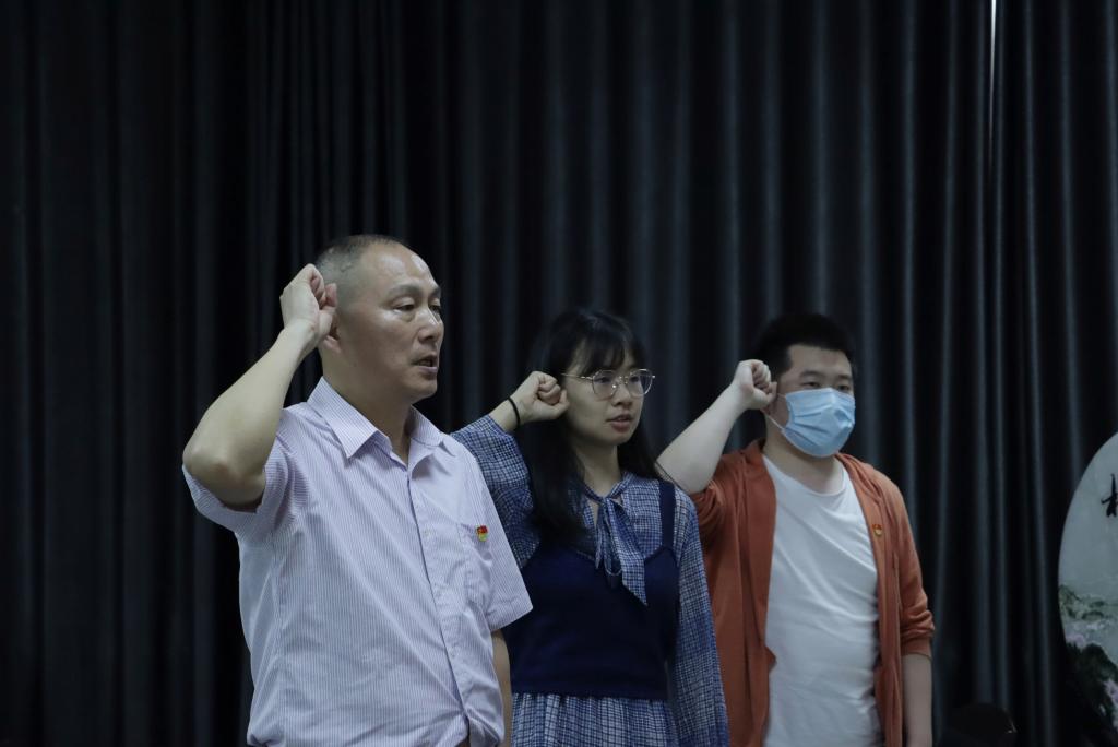 活動伊始,全體起立,奏唱國歌,方庭帶領全體師生黨員重溫入黨誓詞,隨后向同學們贈送“信仰禮包”。