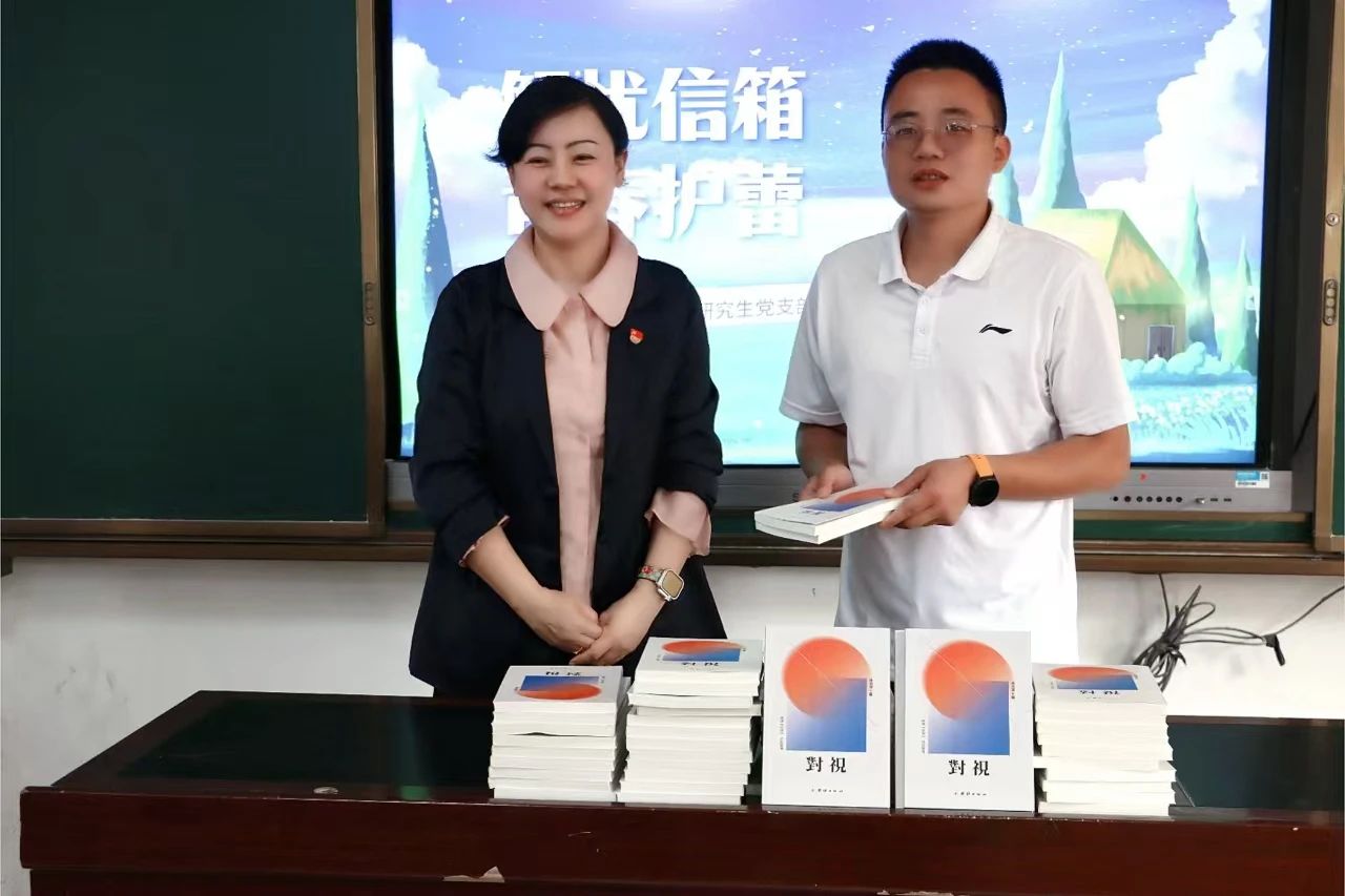 此行,新聞傳播學院研究生黨支部精心挑選了一本重點高中高考前經(jīng)典作文的合集《對視》460本,由新聞傳播學院黨委副書記兼研究生黨支部書記潘昕同志做代表贈送給三市中學和維夏中學。在捐贈儀式上潘昕表示,這一捐書行動不僅是對鄉(xiāng)村學生學習資源的補充,更是幫助學生們打開不同的同齡視野,豐富思維模式,讓心靈得到多元的成長啟發(fā)。