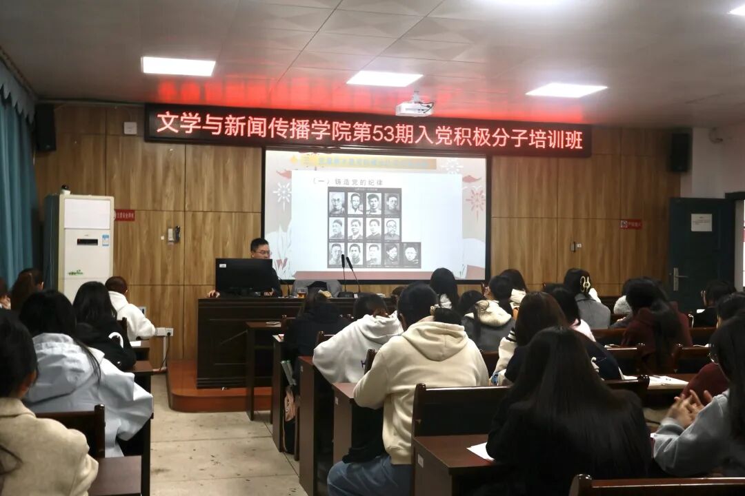 10月21日下午,文學(xué)與新聞傳播學(xué)院在9401會(huì)議室舉辦第五十三期入黨積極分子培訓(xùn)班。學(xué)院黨委負(fù)責(zé)人王文鋒授課,組織員、研究生第一支部書記周祎主持,全體入黨積極分子參加。