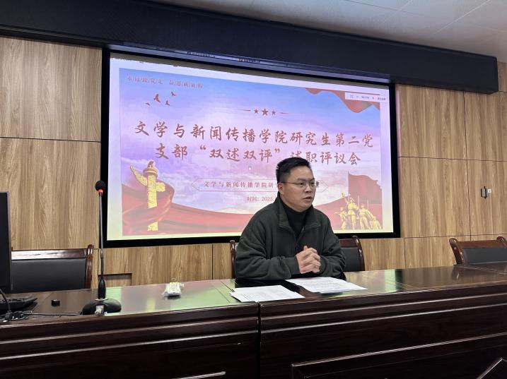 12月17日,文學(xué)與新聞傳播學(xué)院研究生第二黨支部在9401會(huì)議室召開支委選舉大會(huì)暨“雙述雙評(píng)”述職評(píng)議大會(huì)。學(xué)院黨委牽頭負(fù)責(zé)人王文鋒,研究生第二黨支部書記周祎出席,支部全體黨員與會(huì)。