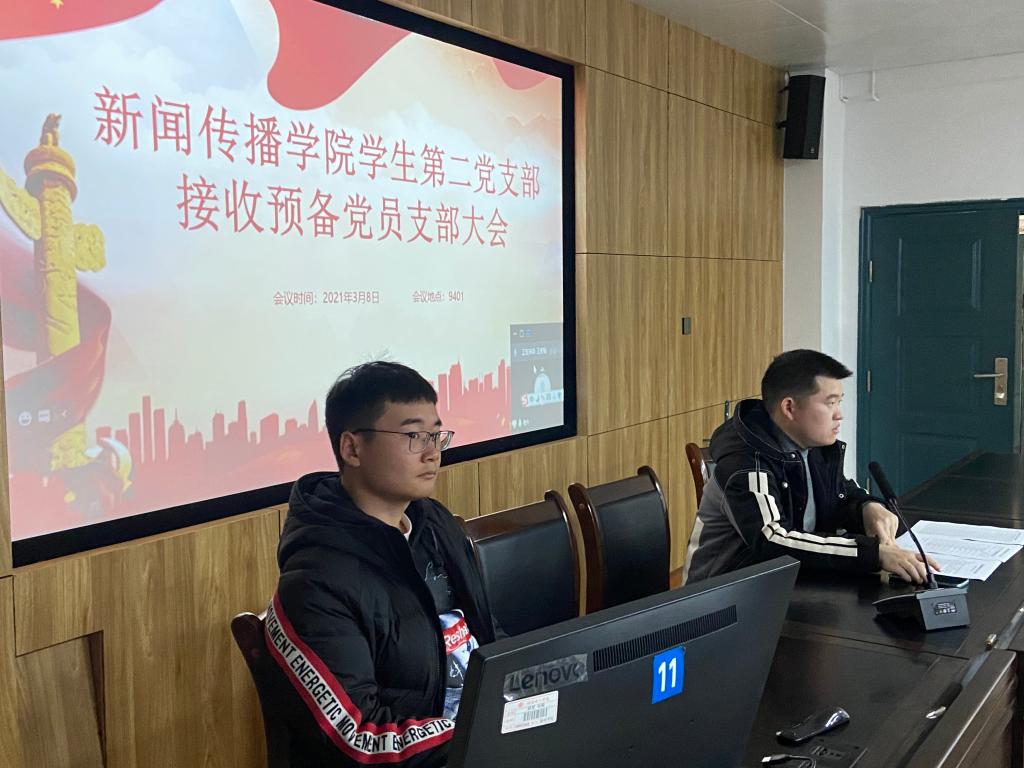 3月8日,新聞傳播學(xué)院學(xué)生第一、第二黨支部召開接收預(yù)備黨員大會(huì)。會(huì)議分別由學(xué)生第一、第二黨支部書記周虎田、張政同志主持,支部43名黨員參加。
