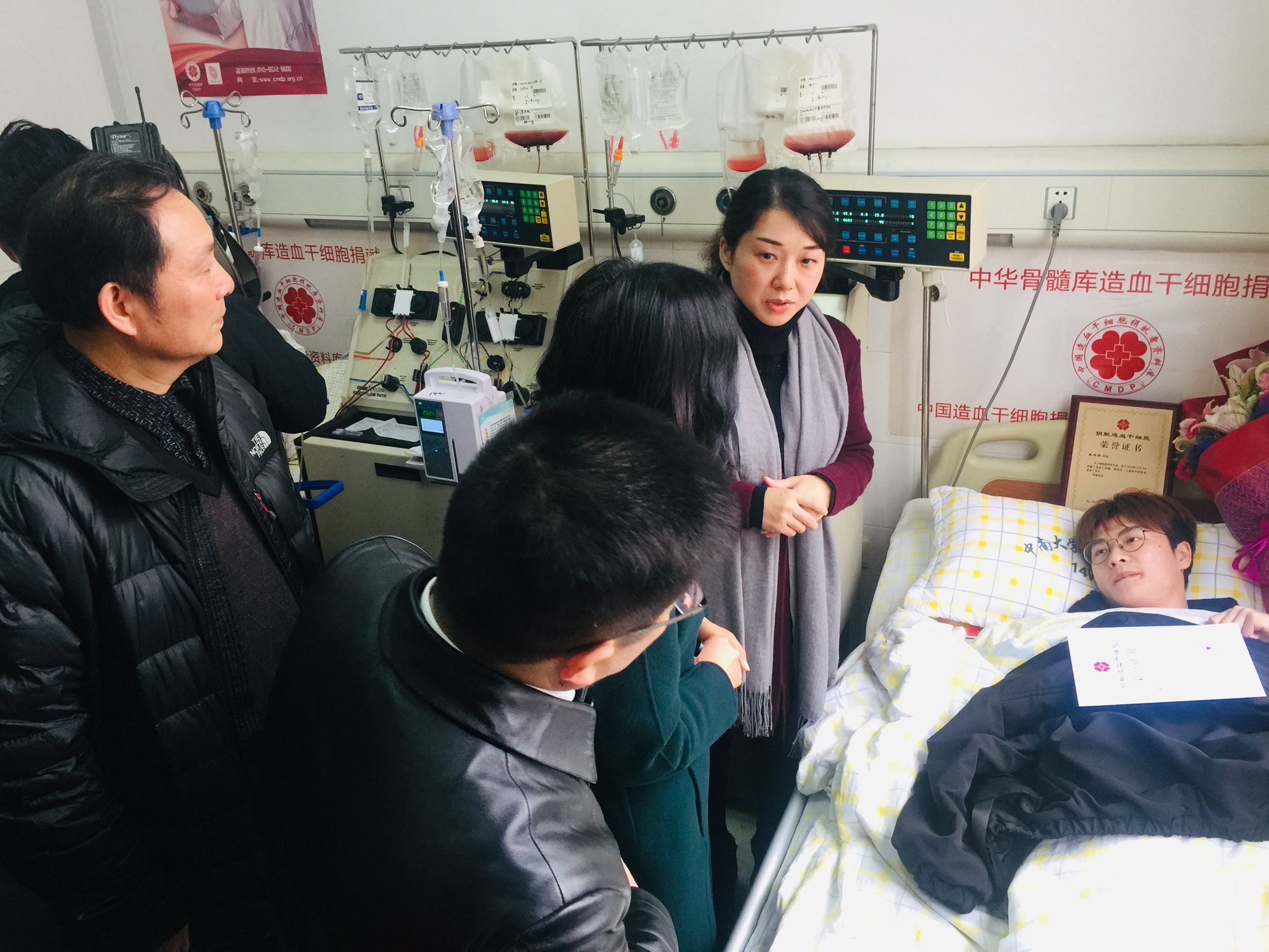 校園網(wǎng)訊 12月13日下午,隨著造血干細胞懸液從戴恩澤身體里緩緩抽出,一場生命接力隨即展開。在醫(yī)護工作人員的幫助下,造血干細胞立即被送走,使得另一個生命得以延續(xù)。