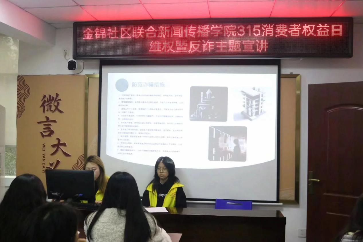 校園網(wǎng)訊 3月15日下午,新聞傳播學院新語心愿志愿服務團隊24名同學赴岳陽樓區(qū)金錦社區(qū)開展3.15反詐宣講活動。