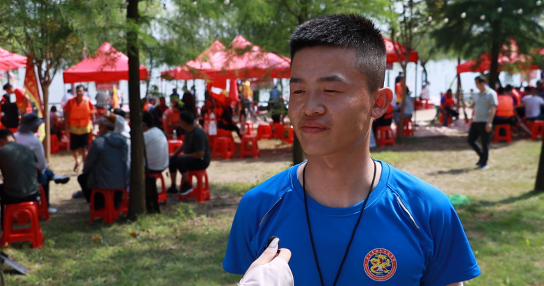他還介紹道,本次比賽中的窯洲社區(qū)盛欣消防龍舟隊和廣州汨羅商會龍舟隊是從屬同一位教練執(zhí)教。“他們是一隊,我們是二隊。他們屬于身經(jīng)百戰(zhàn),而我們就是初出茅廬了。”雖然鄭卓唯知道兩隊間有較大差距,但是在說話時還是表現(xiàn)得非常自信,眼神中透露出一股獨屬于年輕小伙的“沖勁兒”。在接受采訪時,鄭卓唯有些沙啞的嗓音也表明,不管結(jié)果如何,每一場比賽都會盡自己最大的努力去完成。而這,就是新生代年輕人對龍舟精神的理解與傳遞。