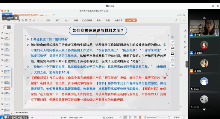 講座中,牛靜教授結(jié)合了質(zhì)化研究和量化研究的期刊論文案例,系統(tǒng)地講解了如何規(guī)范而嚴(yán)謹(jǐn)?shù)剡M(jìn)行學(xué)術(shù)論文的構(gòu)思與寫(xiě)作,內(nèi)容涵蓋了合適選題的尋找、文獻(xiàn)綜述的邏輯布局、研究方法的選擇與使用、論文寫(xiě)作中的行文邏輯與架構(gòu)等,并就研究生同學(xué)科研寫(xiě)作中存在的常見(jiàn)問(wèn)題、如何有效提升科研論文寫(xiě)作水平等議題做了詳細(xì)的指導(dǎo)。