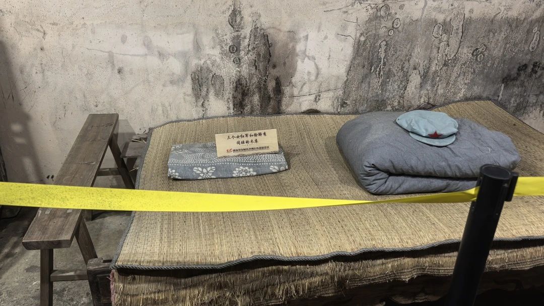 跟隨講解員的腳步,踐行團(tuán)來(lái)到“半條被子”舊址。屋檐低矮,土墻斑駁,木床、桌椅依然保持著當(dāng)年的模樣。徐解秀老人的小兒子朱中雄坐在桌邊,雖已暮年,眼神卻格外明亮,他望著房間內(nèi)的木床,哽咽道:“就是這張床,三位女紅軍和我母親擠在一起,蓋著一條被子過(guò)了夜。”