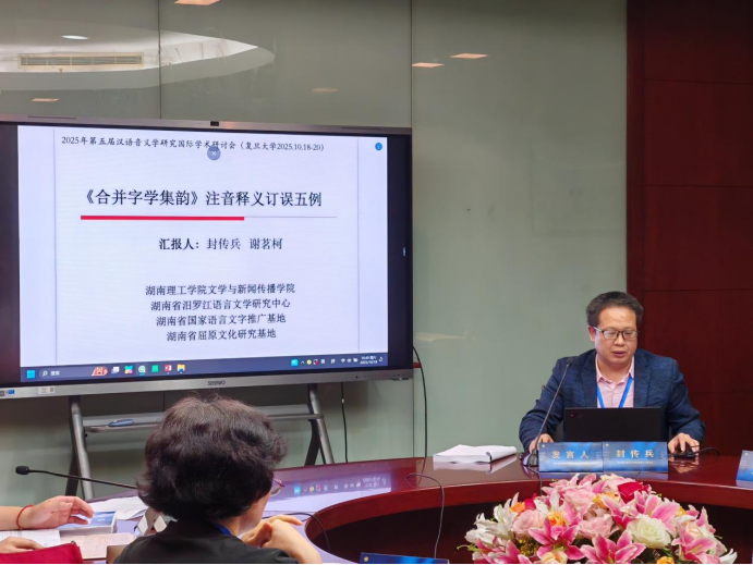 文新學(xué)院封傳兵教授應(yīng)邀參會(huì),擔(dān)任分會(huì)場(chǎng)學(xué)術(shù)主持,并作了題為《〈合并字學(xué)集韻〉注音釋義訂誤五例》的學(xué)術(shù)報(bào)告。報(bào)告以《合并字學(xué)集韻》為研究對(duì)象,綜合運(yùn)用“形音義用”相匹配的研究方法,對(duì)書(shū)中注音釋義方面的訛誤問(wèn)題進(jìn)行舉例分析。觀(guān)點(diǎn)認(rèn)為,明清字書(shū)韻書(shū)是中國(guó)古代語(yǔ)文辭書(shū)發(fā)展史上的重要一環(huán)。然而因?yàn)槎喾N原因,書(shū)中難免出現(xiàn)一些失誤之處,因此有必要對(duì)這些字書(shū)韻書(shū)進(jìn)行校訂整理。在校對(duì)和整理時(shí),“形音義用”綜合關(guān)照是最可靠也是最實(shí)用的方法。這些文獻(xiàn)校對(duì)和整理工作是后續(xù)開(kāi)展?jié)h語(yǔ)史、語(yǔ)音史和文字訓(xùn)詁研究的基礎(chǔ)。