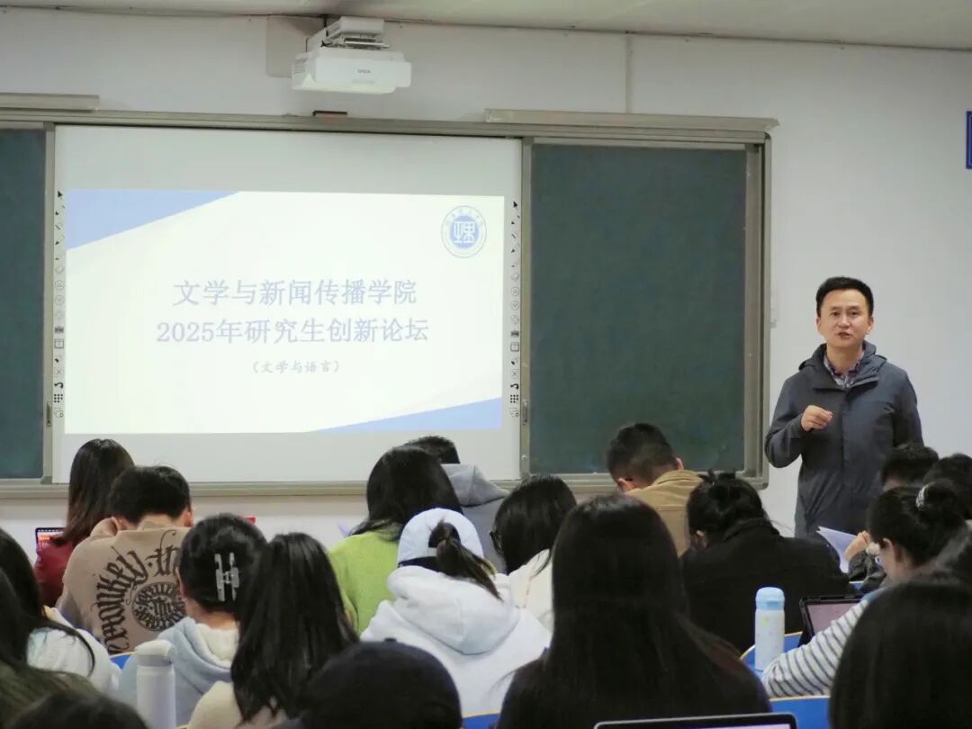 文學(xué)與新聞傳播學(xué)院于11月4日在12108教室舉辦2025年研究生創(chuàng)新論壇(文學(xué)與語(yǔ)言專(zhuān)場(chǎng))匯報(bào)會(huì)。學(xué)院副院長(zhǎng)張勇出席,郝勝蘭、李云飛、雒志達(dá)、蔡旺、王玲霞五位教師擔(dān)任評(píng)委,譚家璐同學(xué)主持,中國(guó)語(yǔ)言文學(xué)專(zhuān)業(yè)全體研究生參會(huì)。