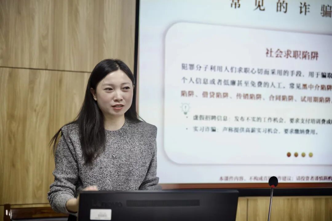 隨后,賀冬梅帶來反詐知識宣講。她結(jié)合真實案例拆解常見詐騙手段,普及金融安全常識,引導學生樹立風險防范意識,助力筑牢校園安全防護網(wǎng)。