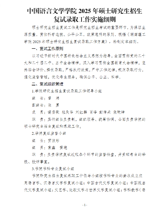 中國語言文學(xué)學(xué)院2025年碩士研究生招生復(fù)試錄取工作實(shí)施細(xì)則