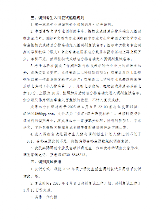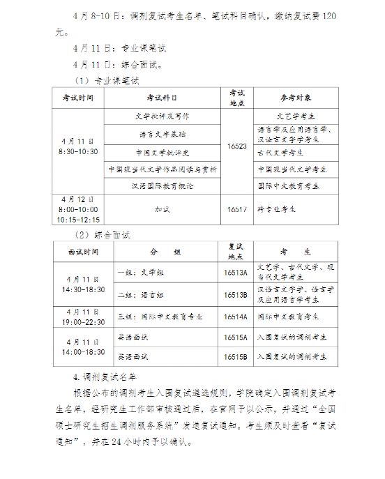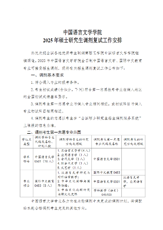 中文學(xué)院2025年碩士研究生調(diào)劑復(fù)試工作安排